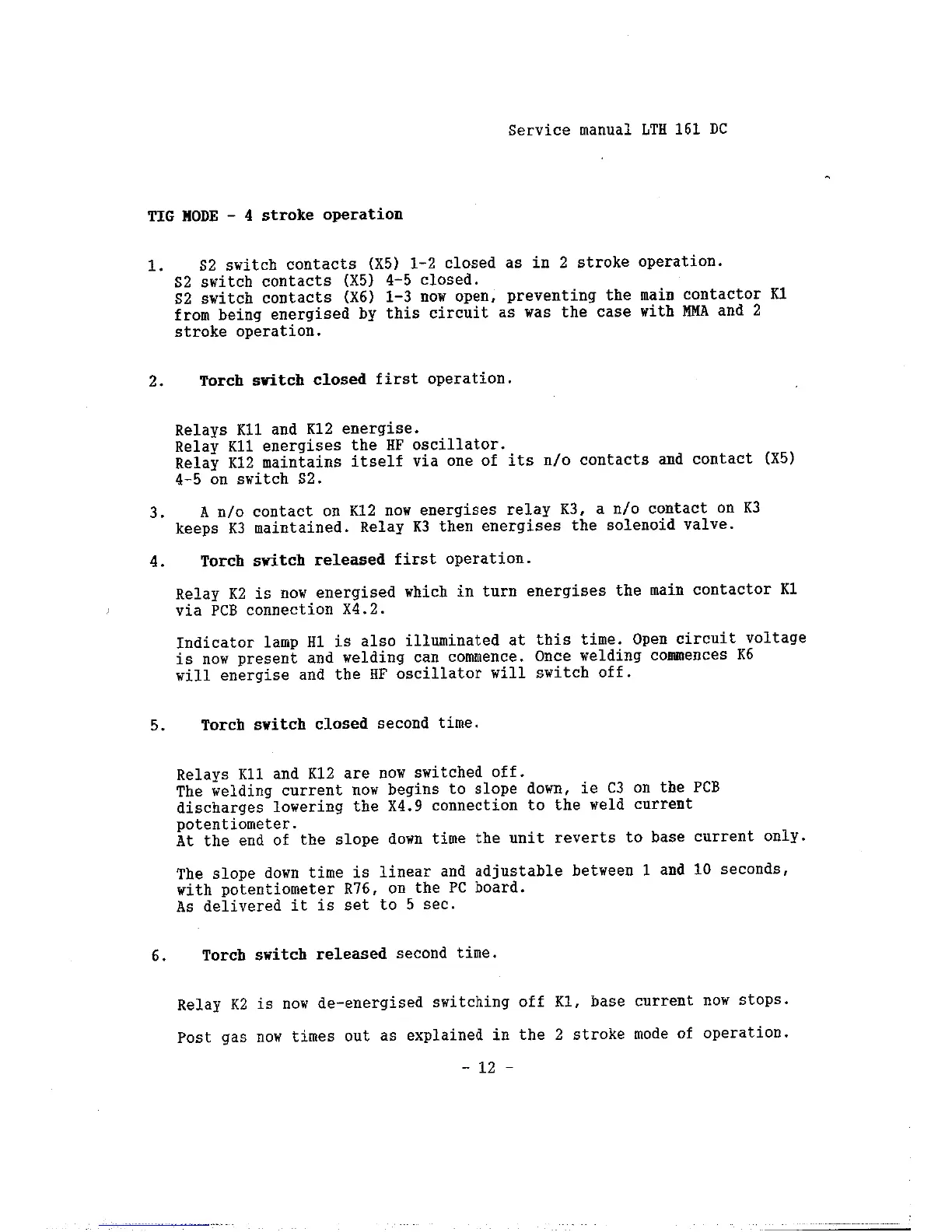 ESAB LTH 161 - TIG Mode - 4 Stroke Operation