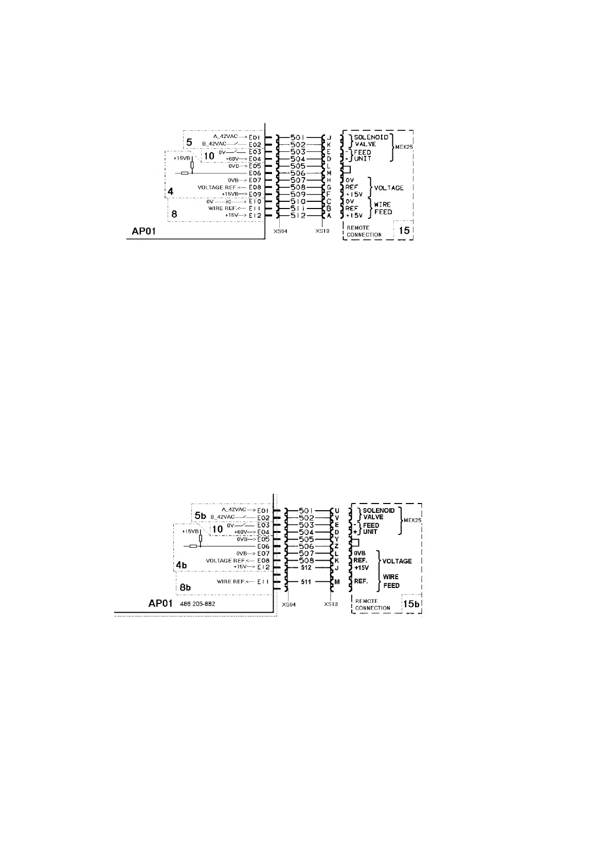 S Wire feed speed remote control unit: pins M, J and L in XS13.