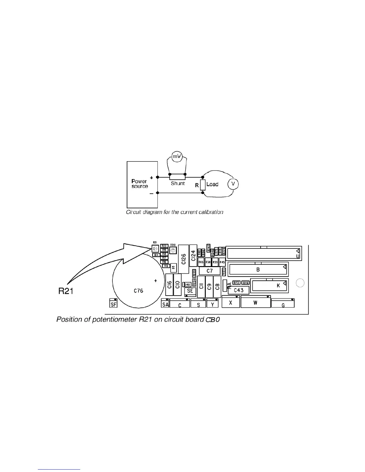 7 Using potentiometer R21 on circuit board CB0, adjust the shunt voltage to