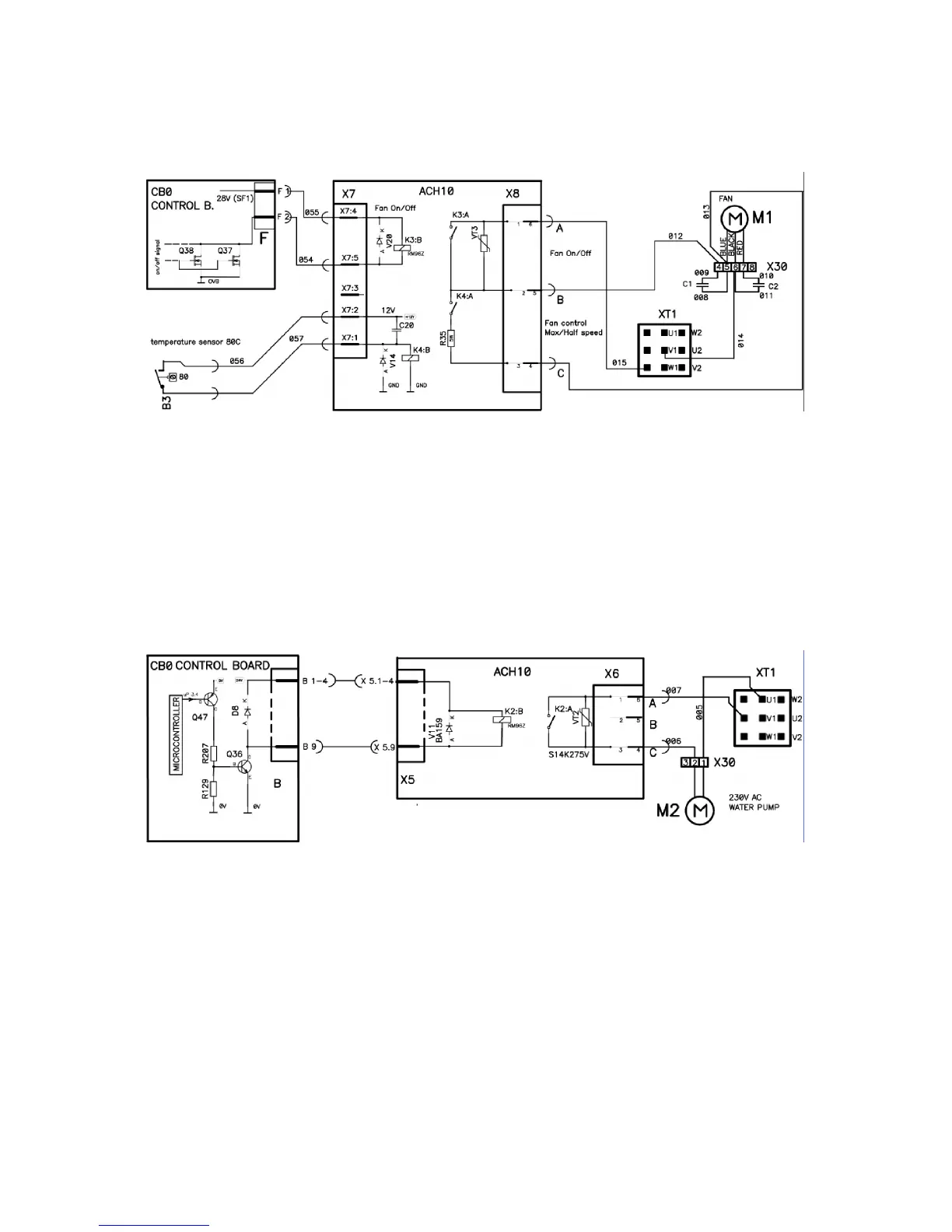 When pump is off voltage between X8:A -- X8:C should be about 230V