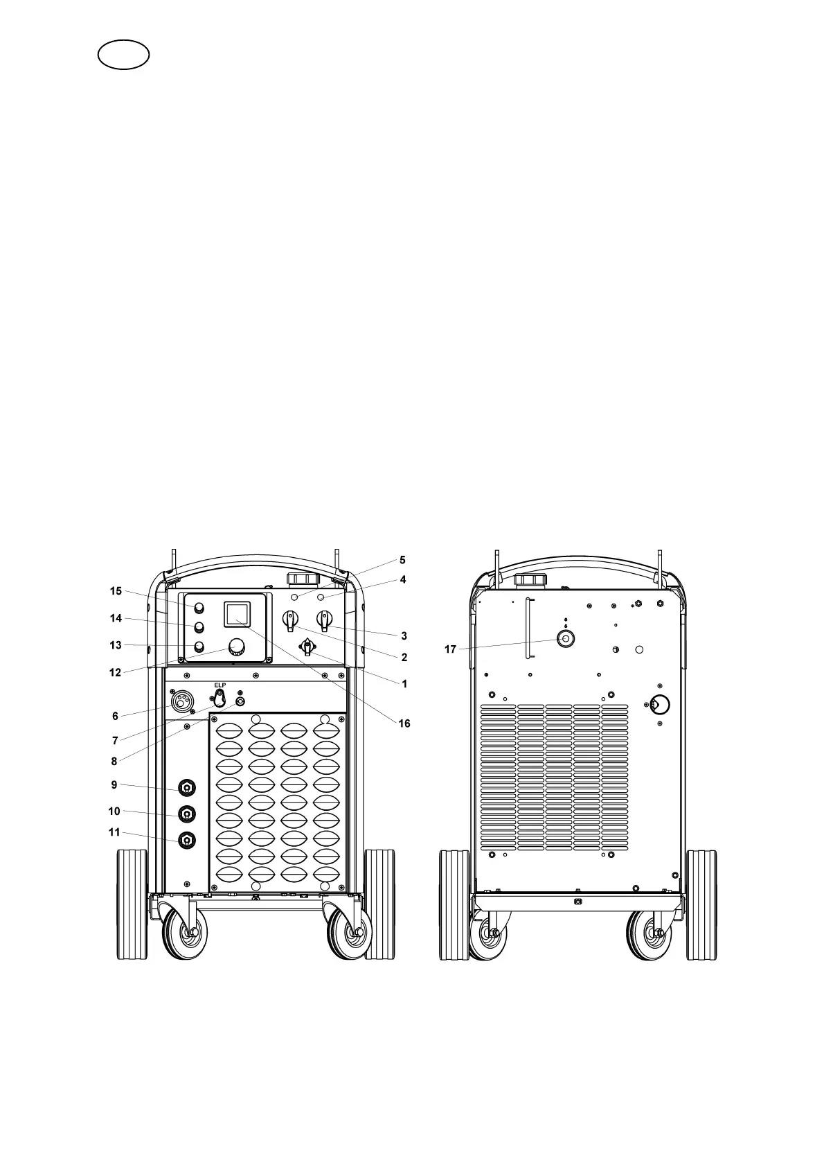 6 Aansluiting voor lastoorts 15 Knop voor instellen van nabrandtijd