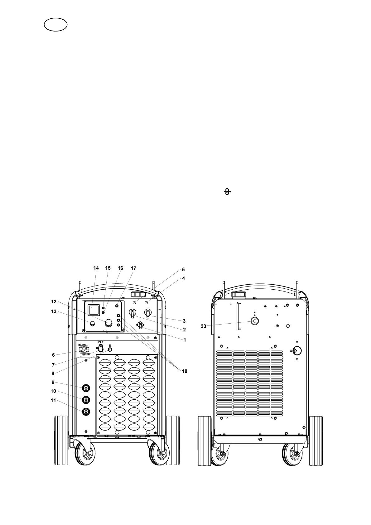 6 Anslutning för svetspistol 18 Indikatorlampor för rekommenderad polari-