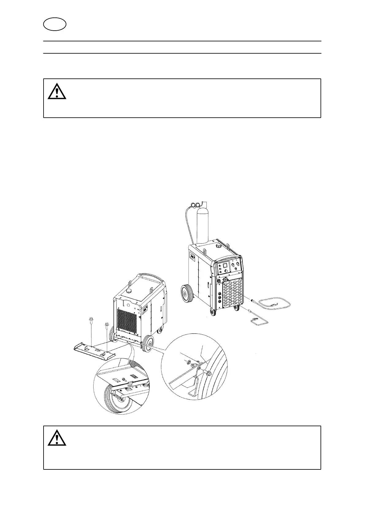 Før man tar maskinen i bruk, skal man sette bakhjulene i bakre stilling.