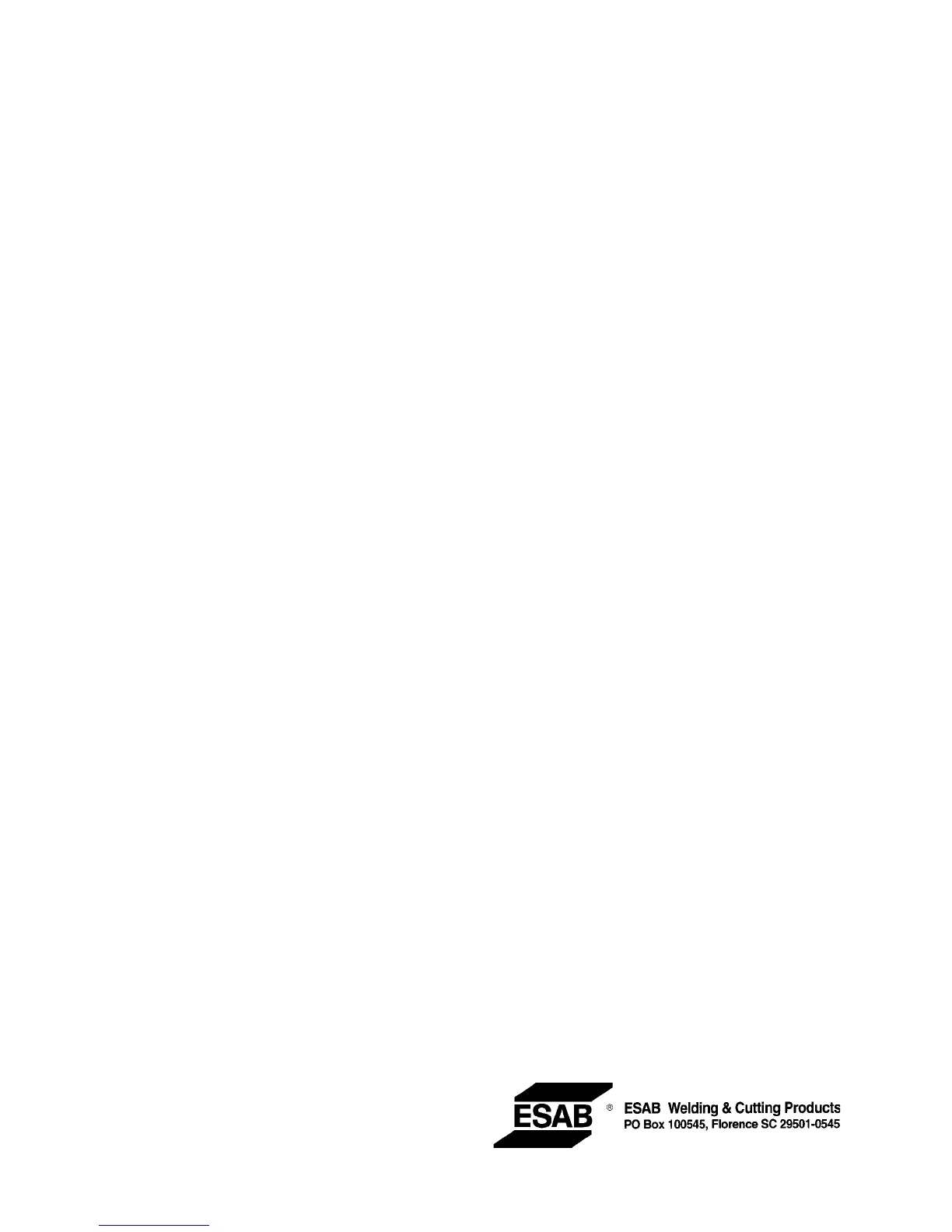 Telephone: (800) ESAB-123/ Fax: (843) 664-4452/ Web:http://www.esab.com