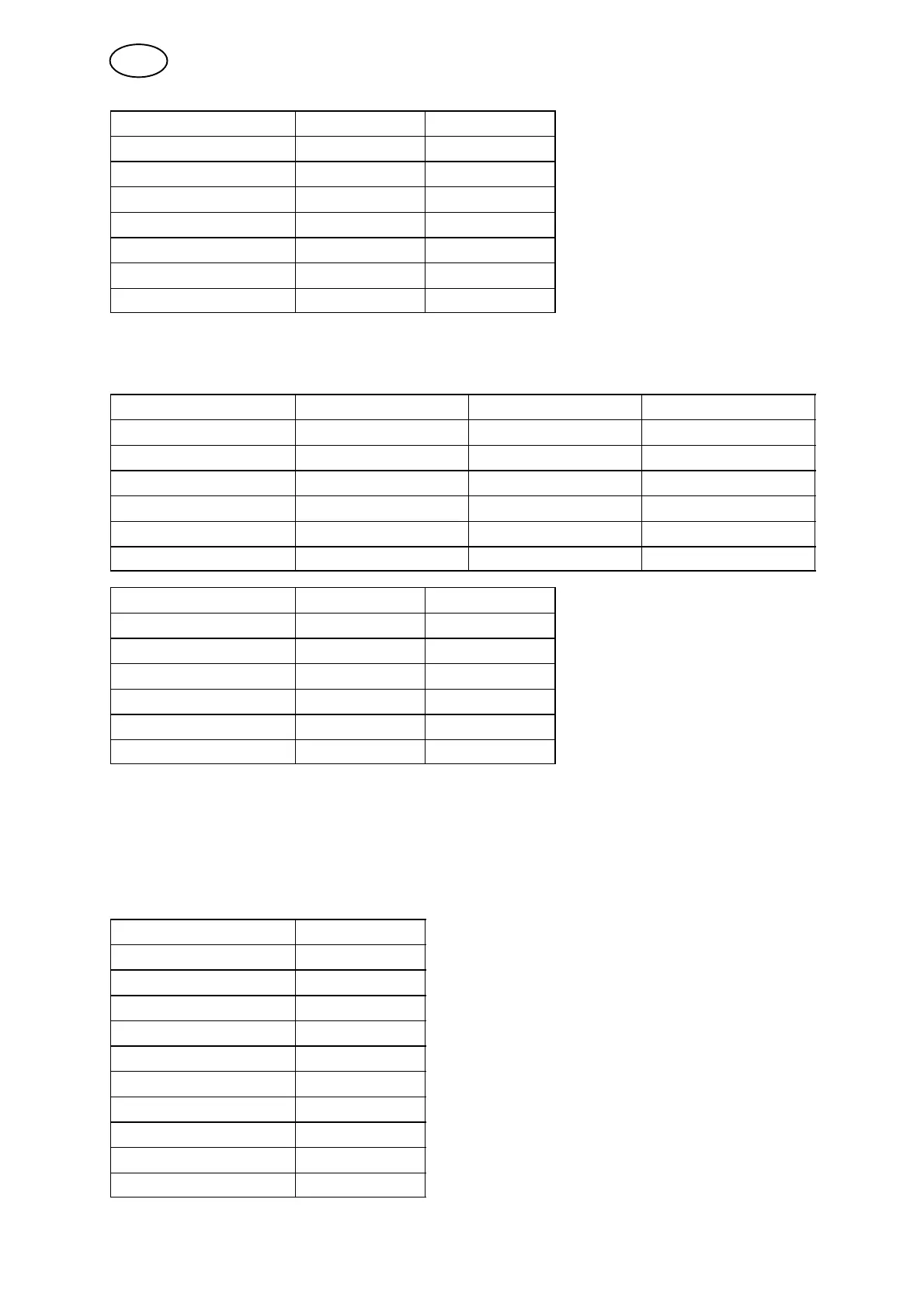 tables below.