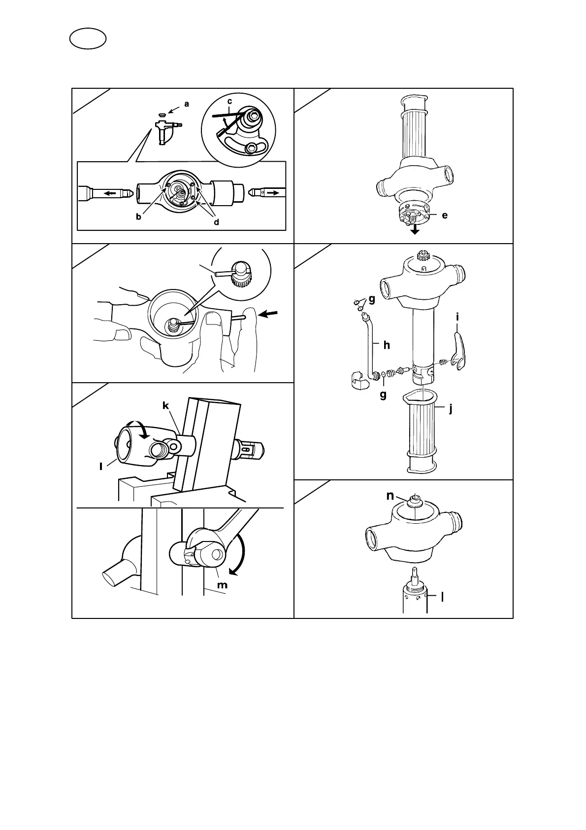 Unload the spring (c) and undo the screws (d) holding the contact tube.
