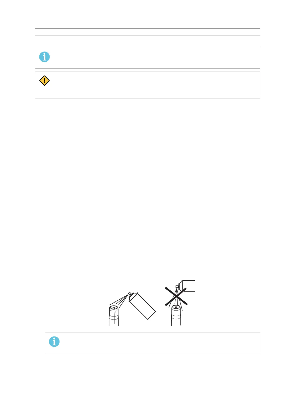 Never spray directly into the nozzle. Too much spray can attract dirt.