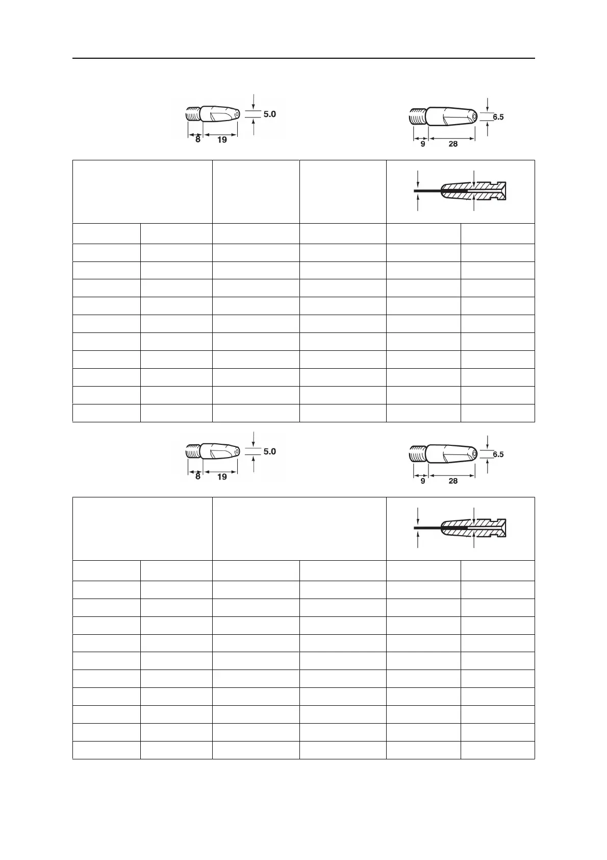 Contact tips PSF™ 250C, PSF™ 315C LD, PSF™ 405C, PSF™ 410Cw