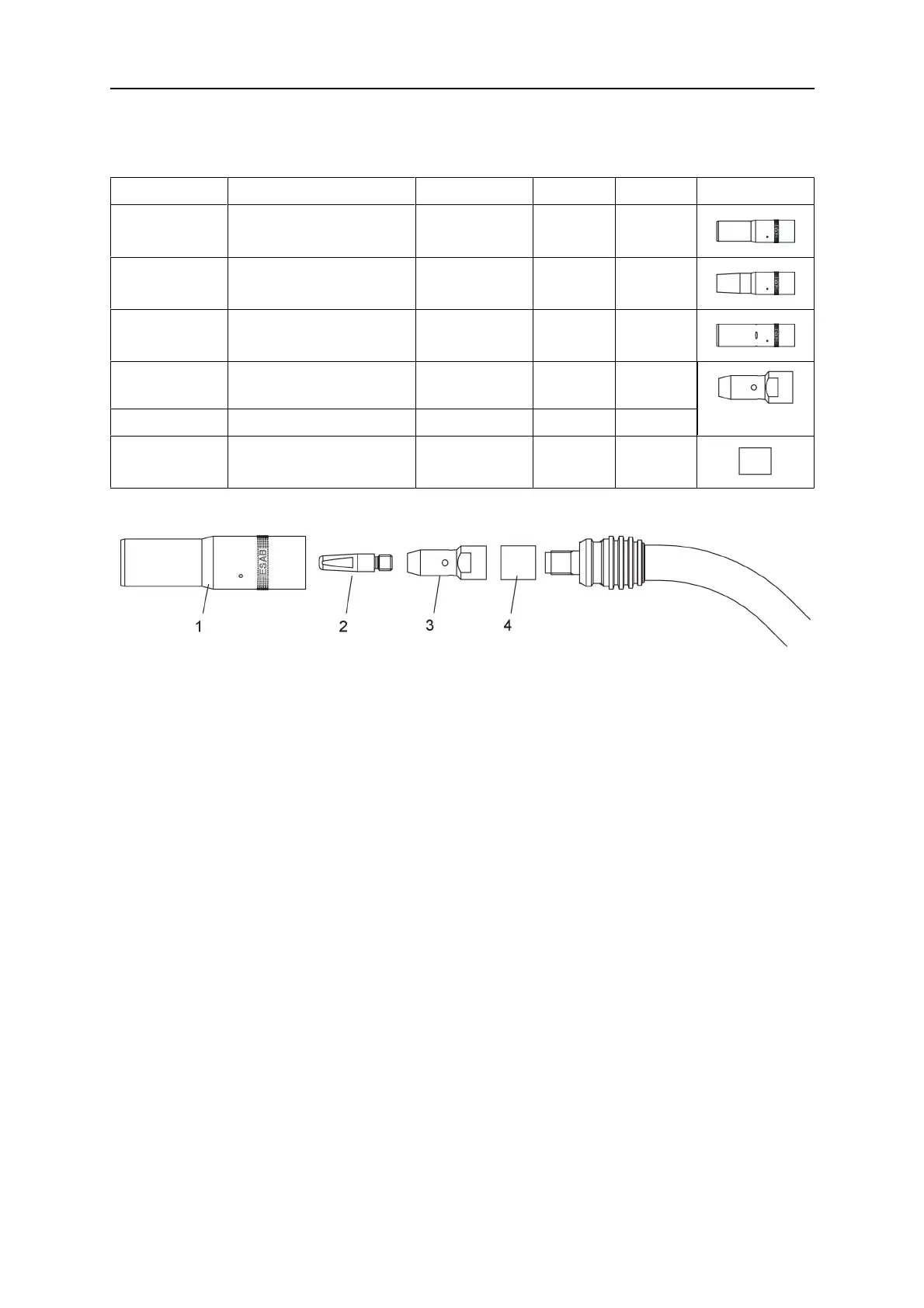 1. Gas nozzle 3. Tip adaptor M8