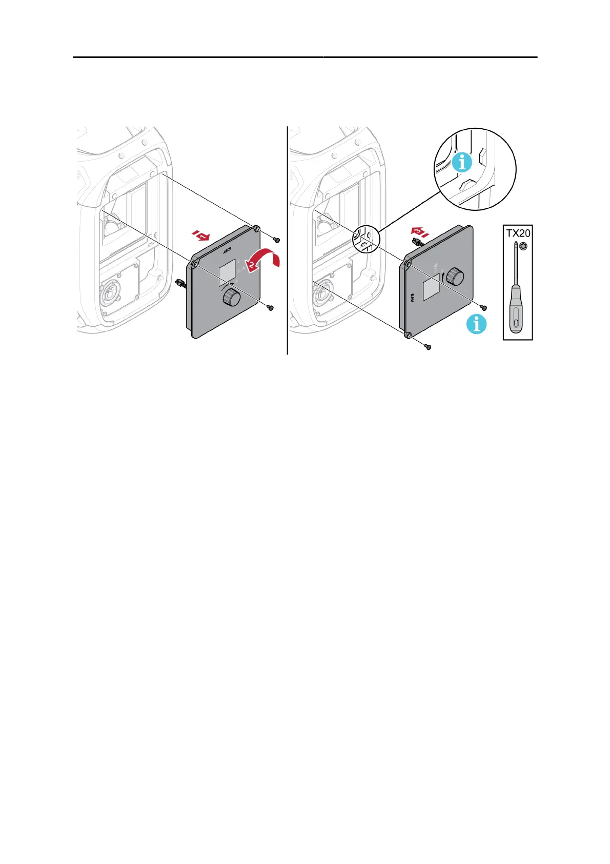 3) Attach the control panel, ensuring that the small tabs are in the correct position.
