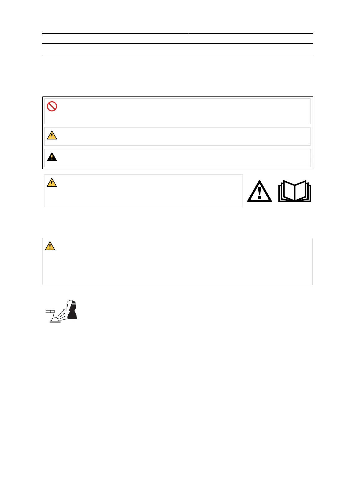 6 Protect other personnel from arc rays and hot sparks with a suitable non-flammable