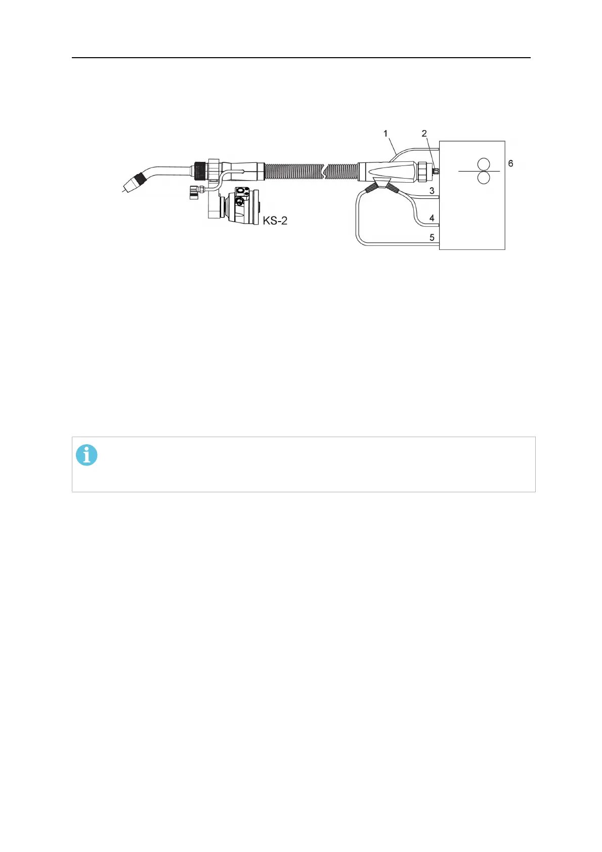 1. Connect the central connector of the cable assembly (2) to the wire feeder cabinet