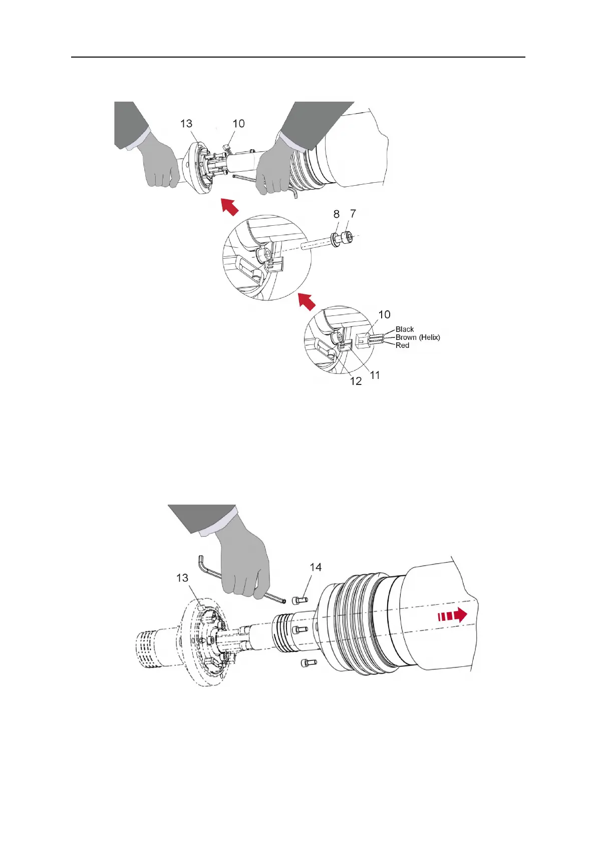 8. Insert the three M5 screws (14) and tighten without excessive force.