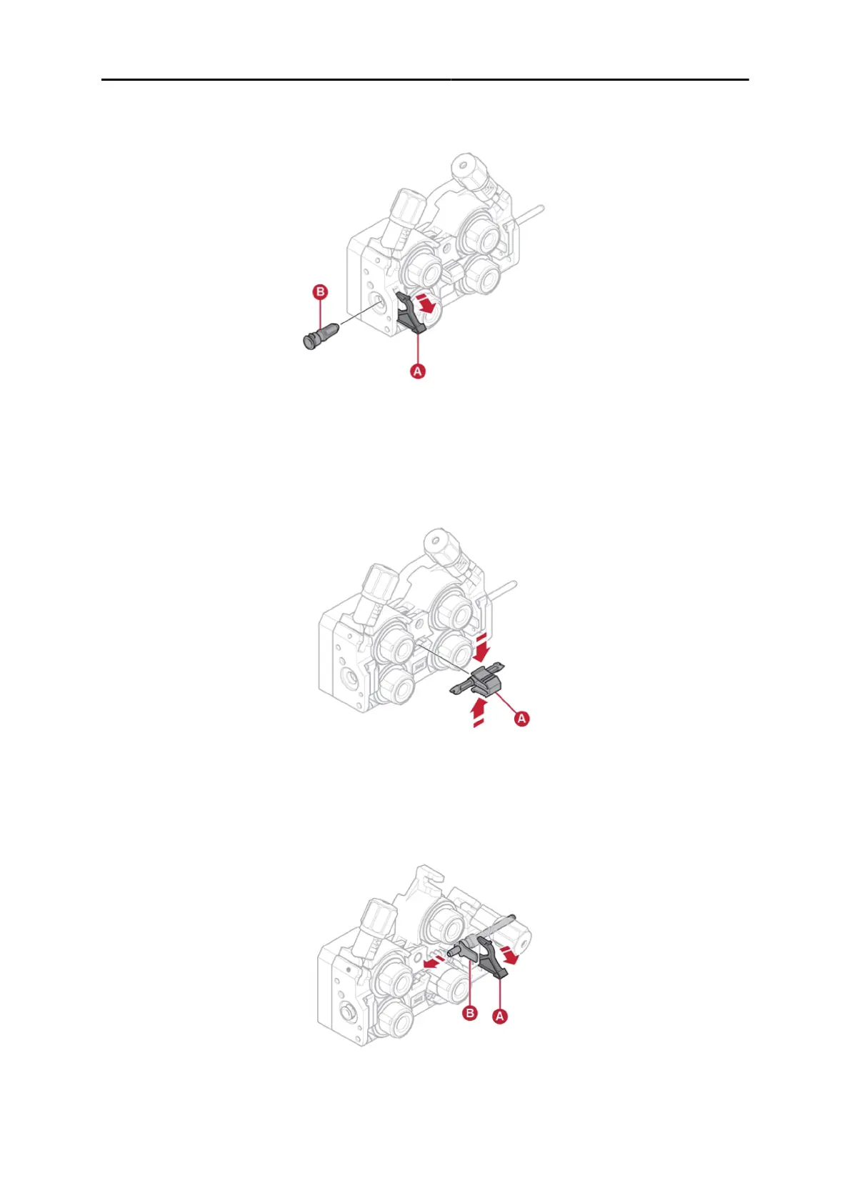 1) Apply a little pressure on the middle wire guide clip and pull out the middle wire guide (A).