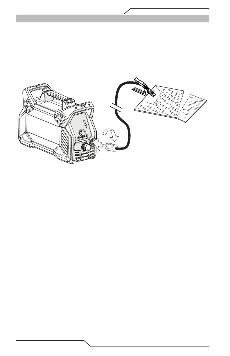 1. Attach the Dinse type connection of the work lead to the power supply front panel as shown