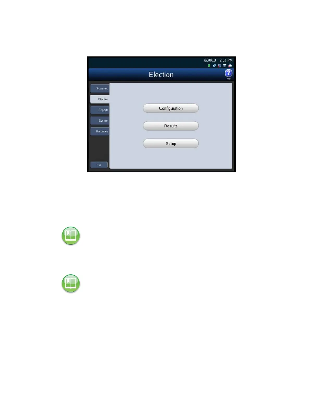 The following is an example of the Election menu.