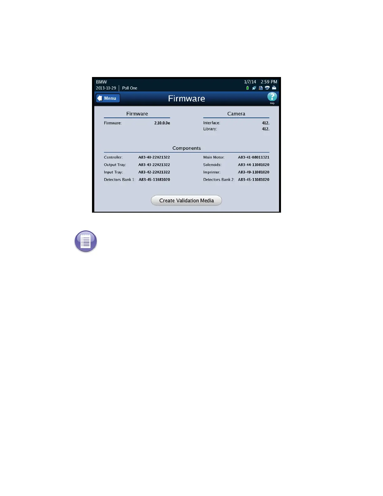 The following is an example of the Firmware screen.