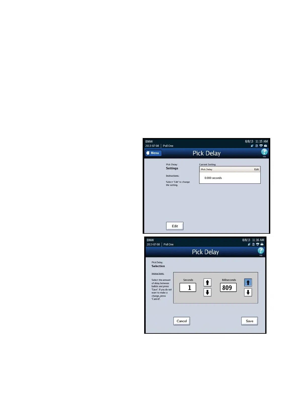 input tray. For example, if the pick delay is set to 15 seconds, only four ballots will be