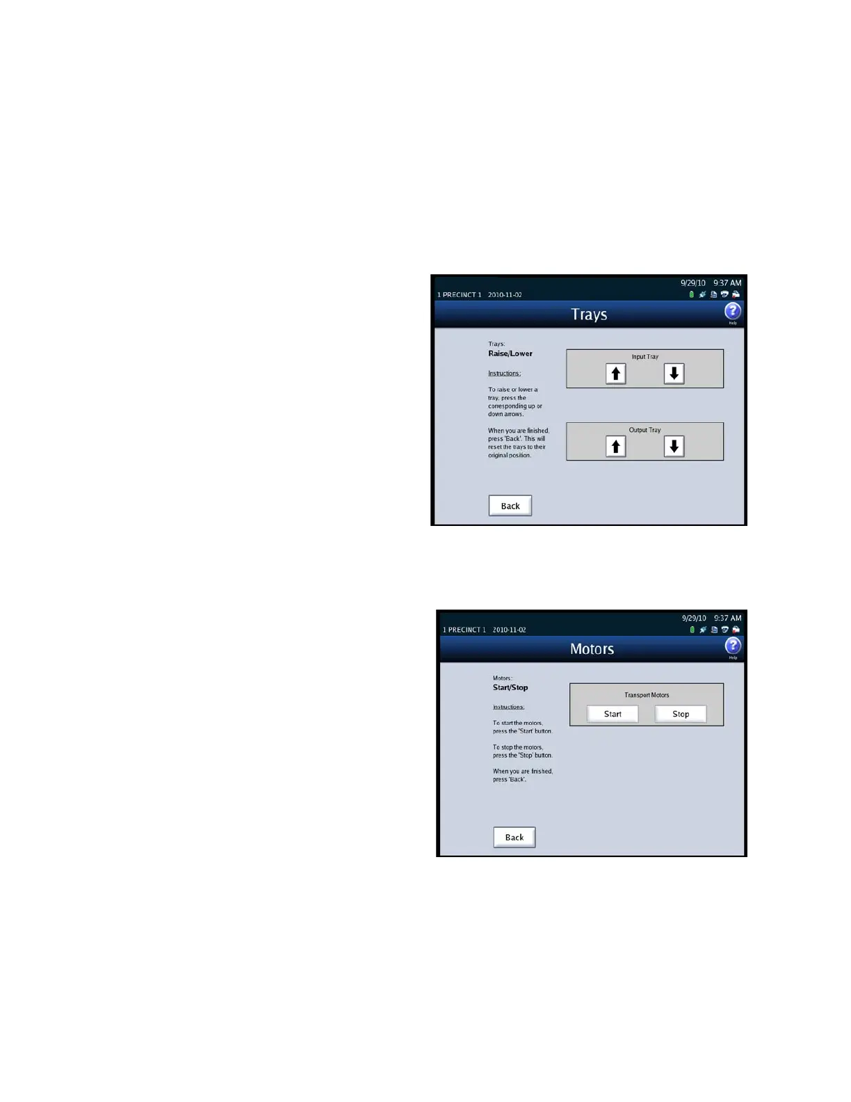 Use the Trays option to raise or lower the input tray or the bottom output tray. Press