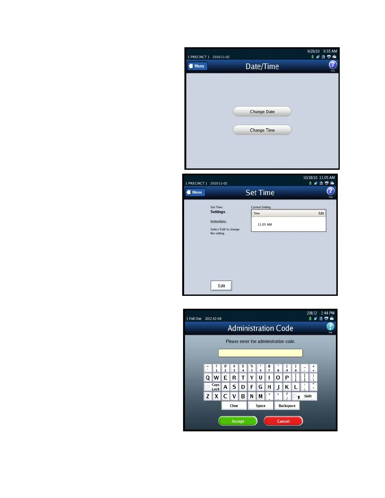 Date/Time screen.