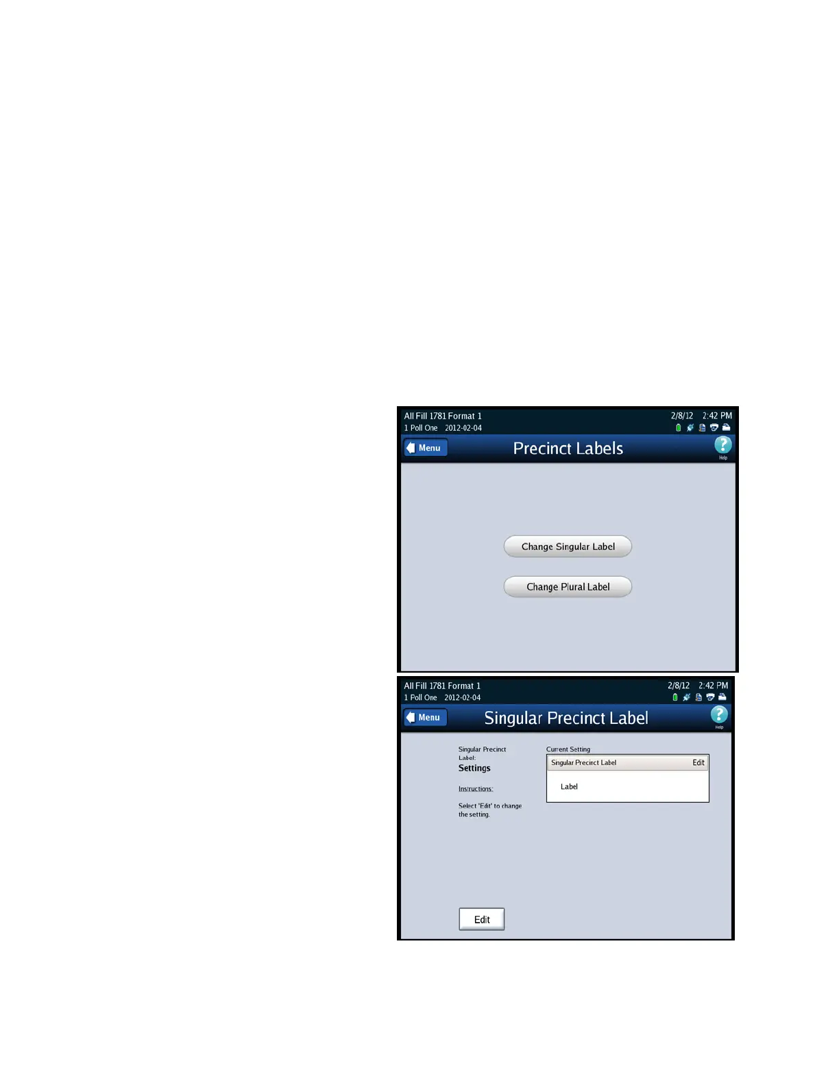 1. Select Precinct Label on the Configuration screen to access the Precinct Labels