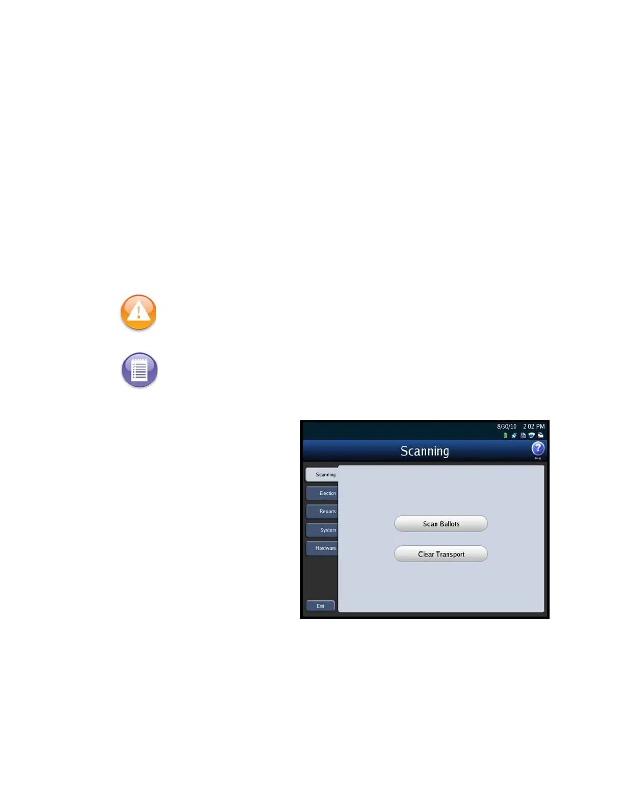Warning: The ballot scanning process assumes that the scanner has been powered on, all