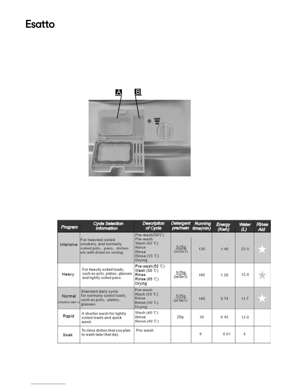 → Compartment A (below) is for the main wash cycle detergent.