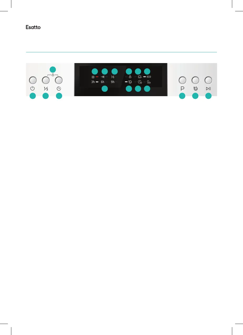 1. On/O button: switches the dishwasher On and O.