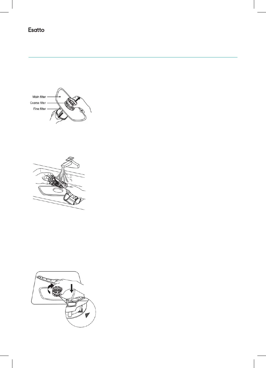 main lter. Under running tap water, clean both the mesh main lter and the course lter, removing any