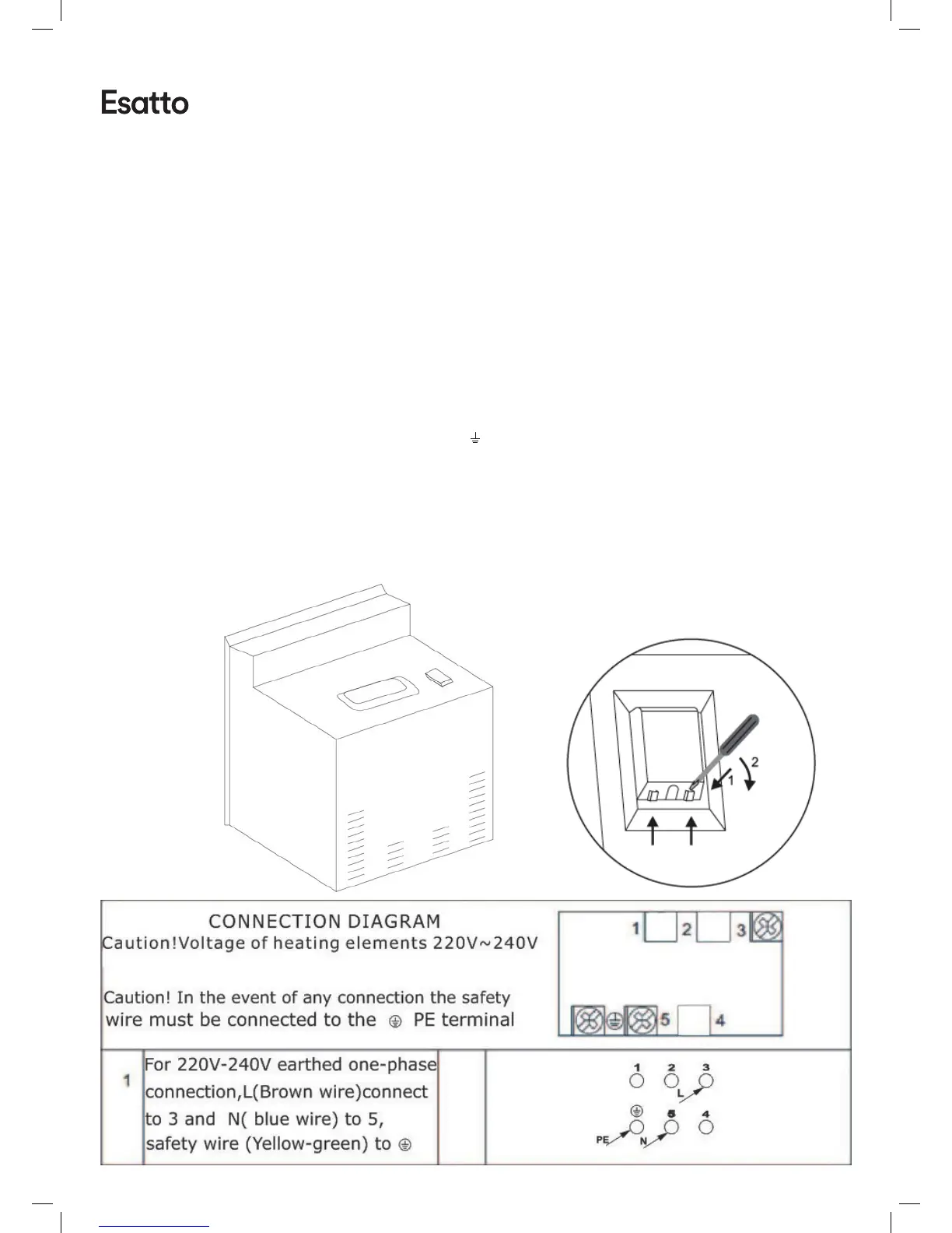 (220V-240V/50Hz). The connection diagram is also found on the cover of