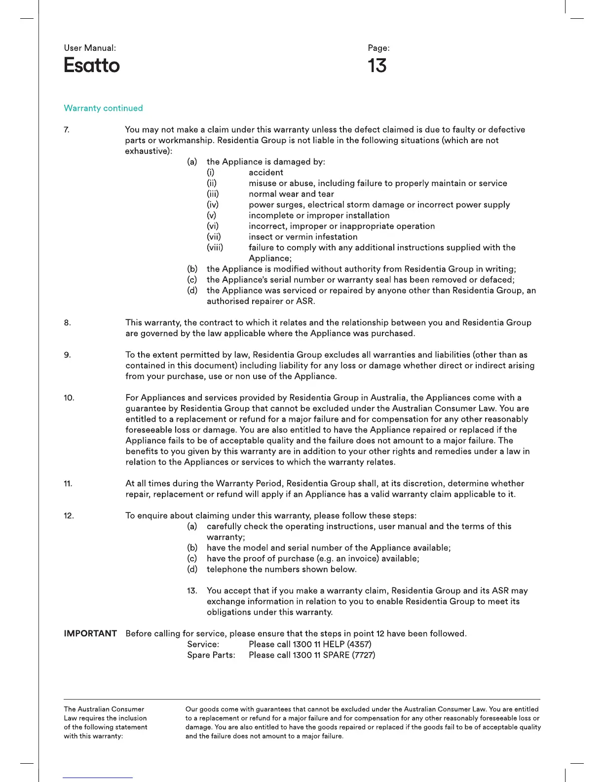 Esatto EVD4 - Warranty Claims and Exclusions; Warranty Claim Procedures; Warranty Exclusions and Limitations