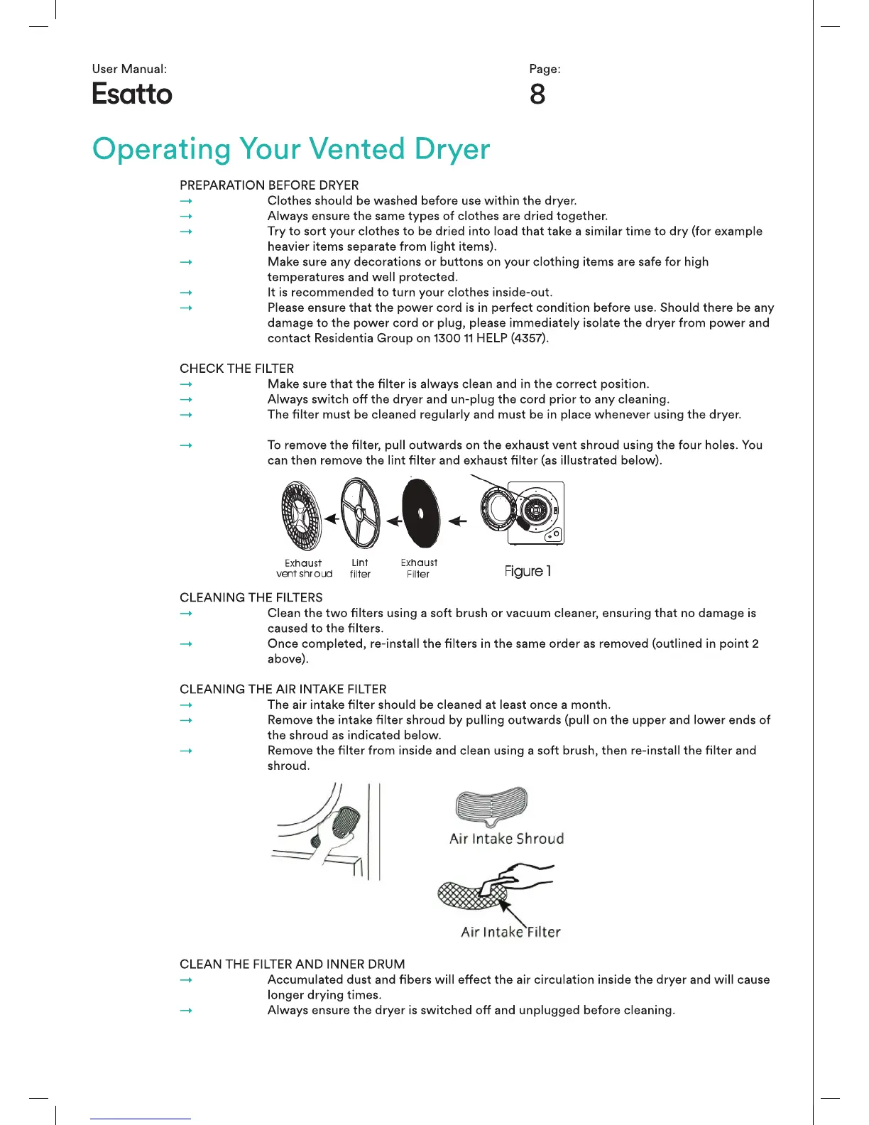Esatto EVD4 - Operating Your Vented Dryer; Filter Maintenance and Cleaning