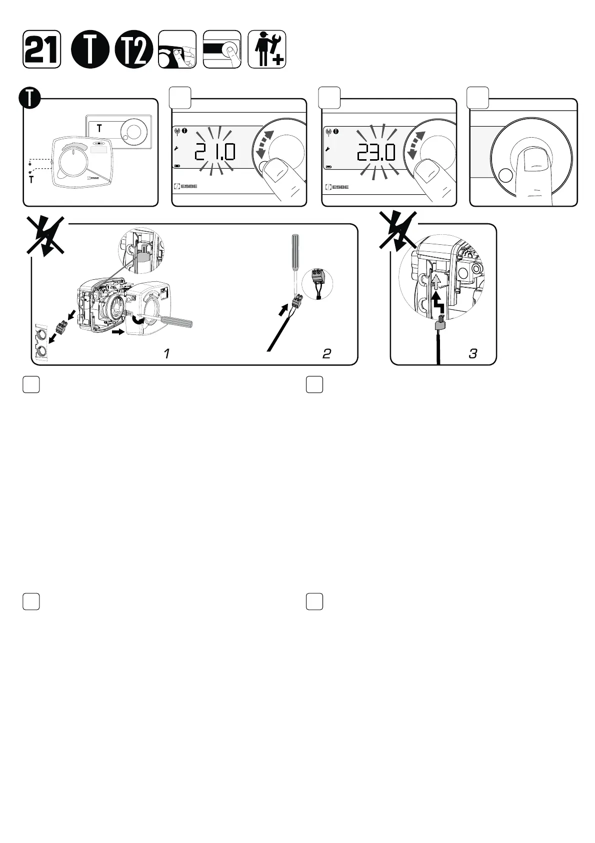 När de två ledarna kortslutes aktiveras T2 temperaturen