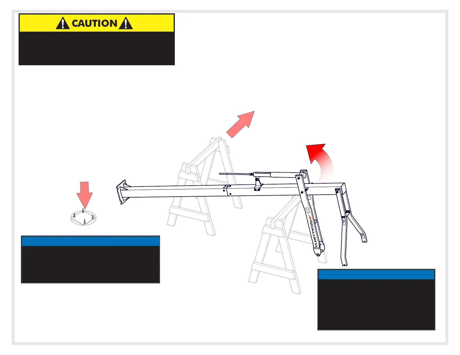 one saw horse, then carefully lower