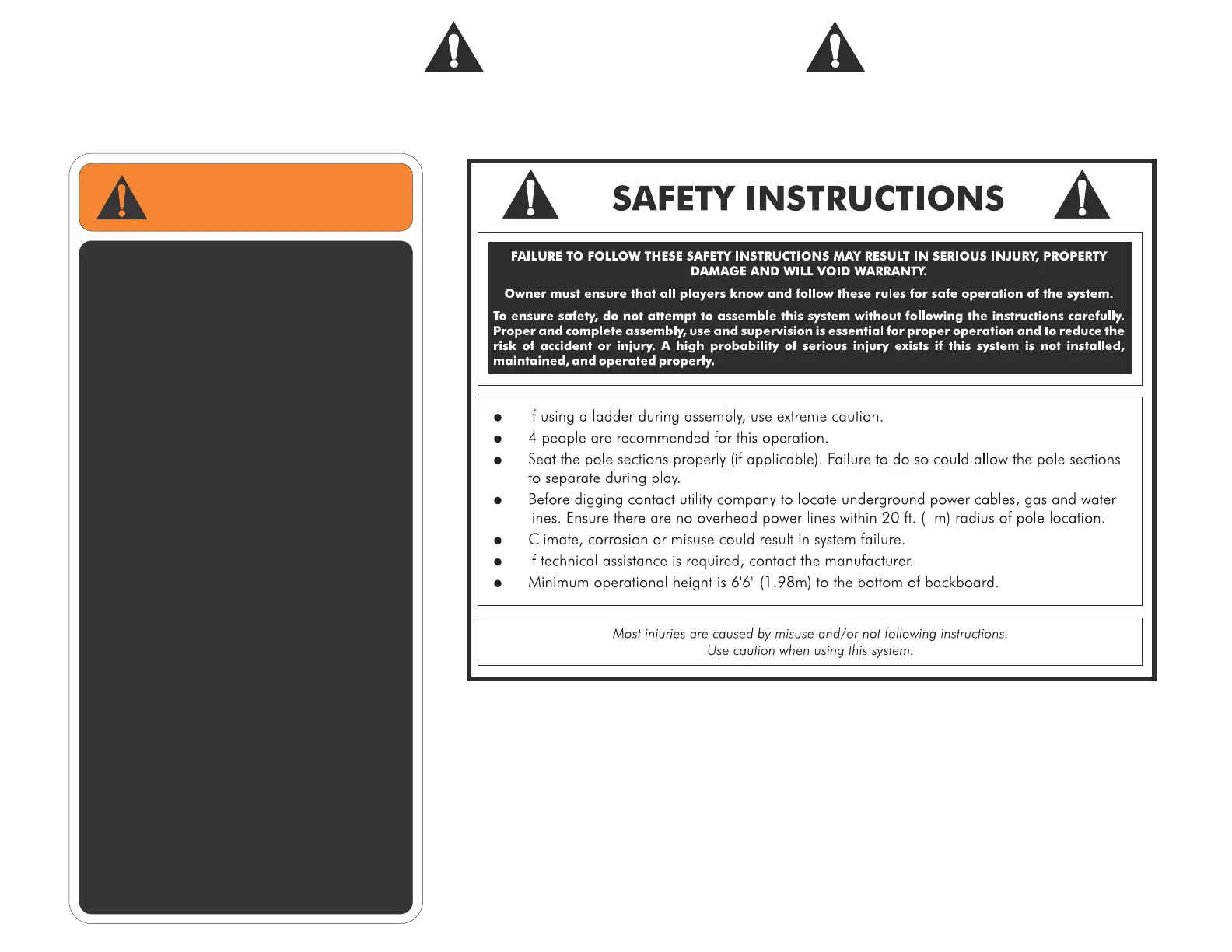 Owner must ensure that all players know and follow these rules for safe operation of the system.