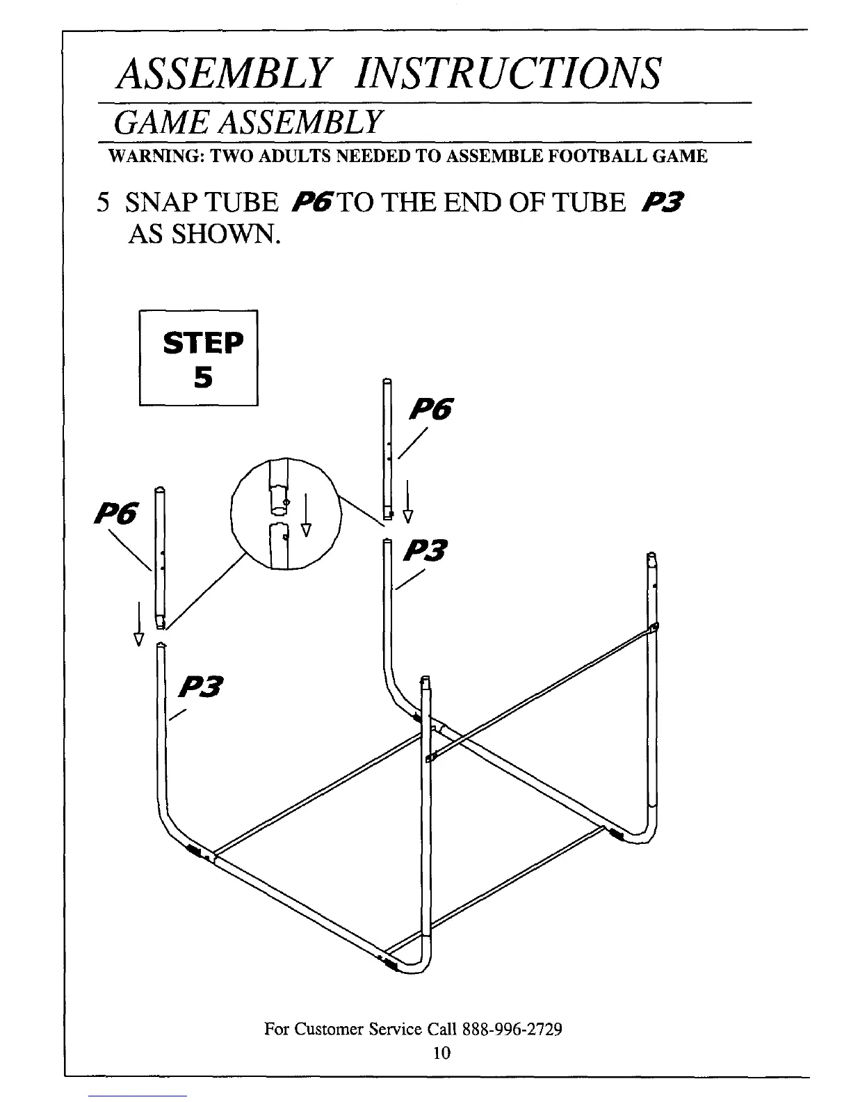 WARNING: TWO ADULTS NEEDED TO ASSEMBLE FOOTBALL GAME