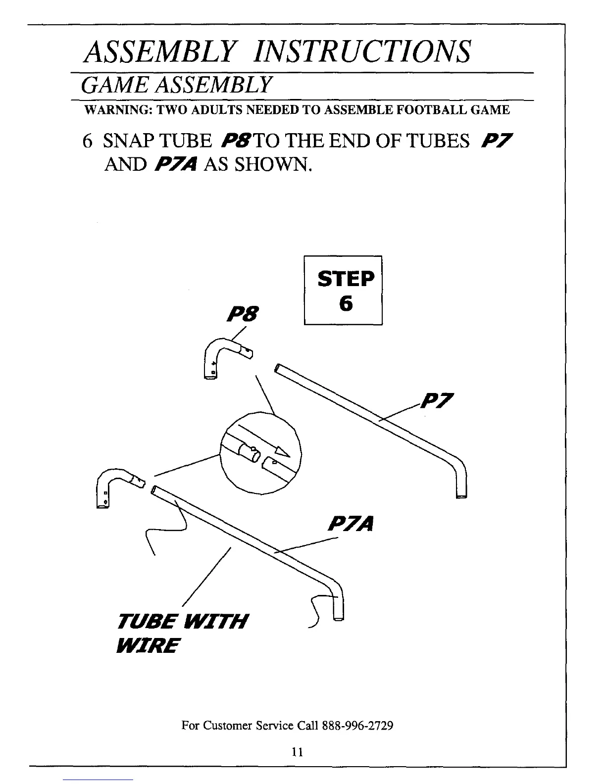 WARNING: TWO ADULTS NEEDED TO ASSEMBLE FOOTBALL GAME