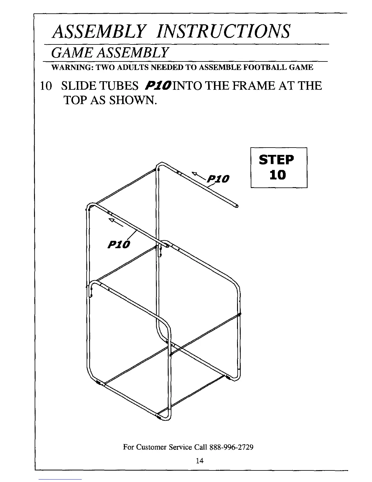 WARNING: TWO ADULTS NEEDED TO ASSEMBLE FOOTBALL GAME