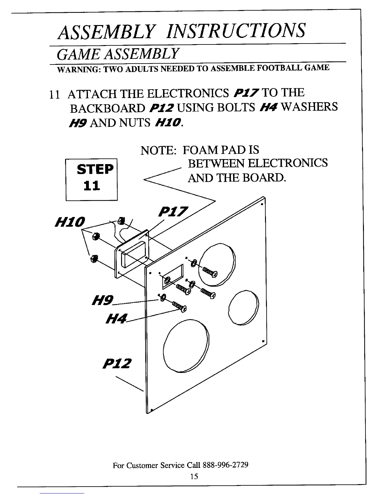 WARNING: TWO ADULTS NEEDED TO ASSEMBLE FOOTBALL GAME