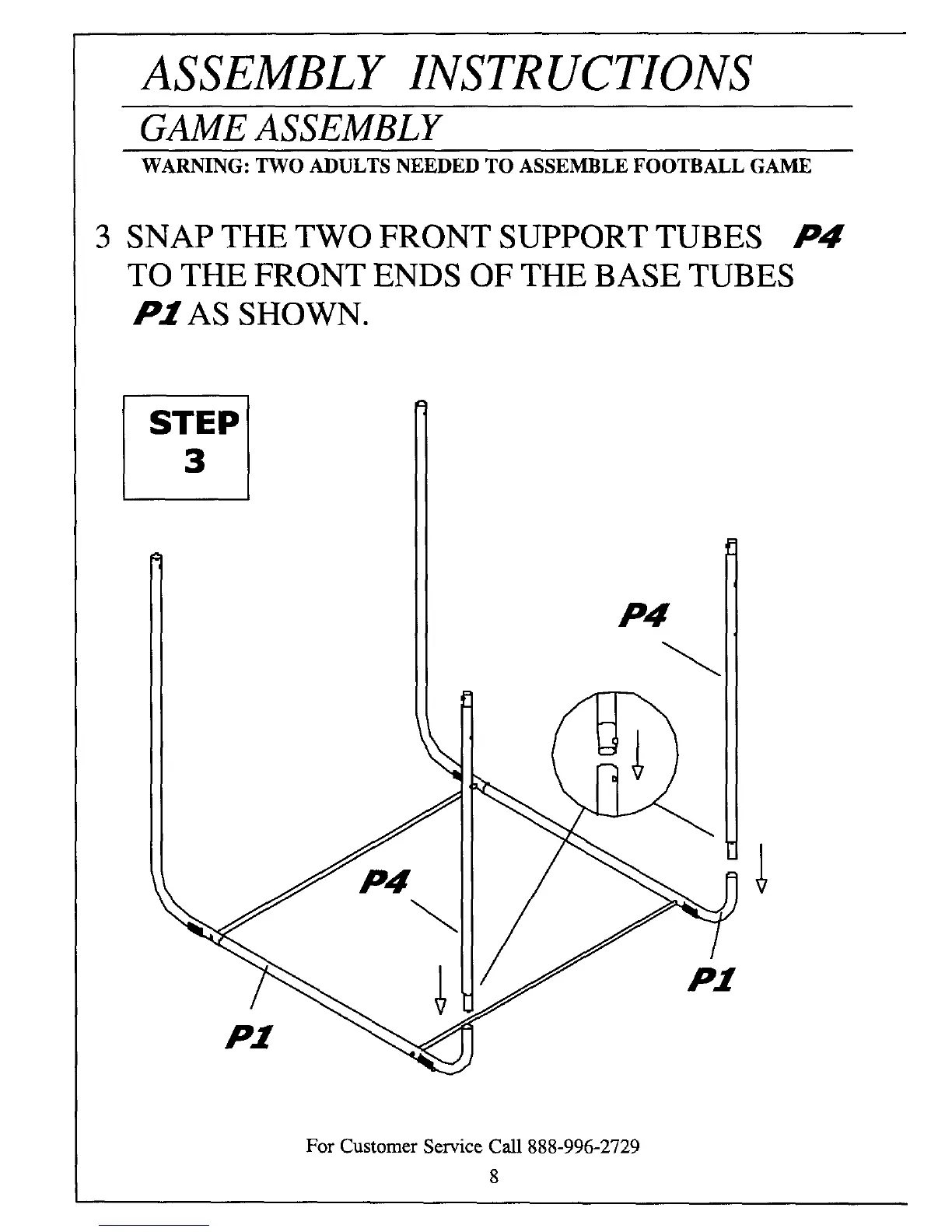 WARNING: TWO ADULTS NEEDED TO ASSEMBLE FOOTBALL GAME