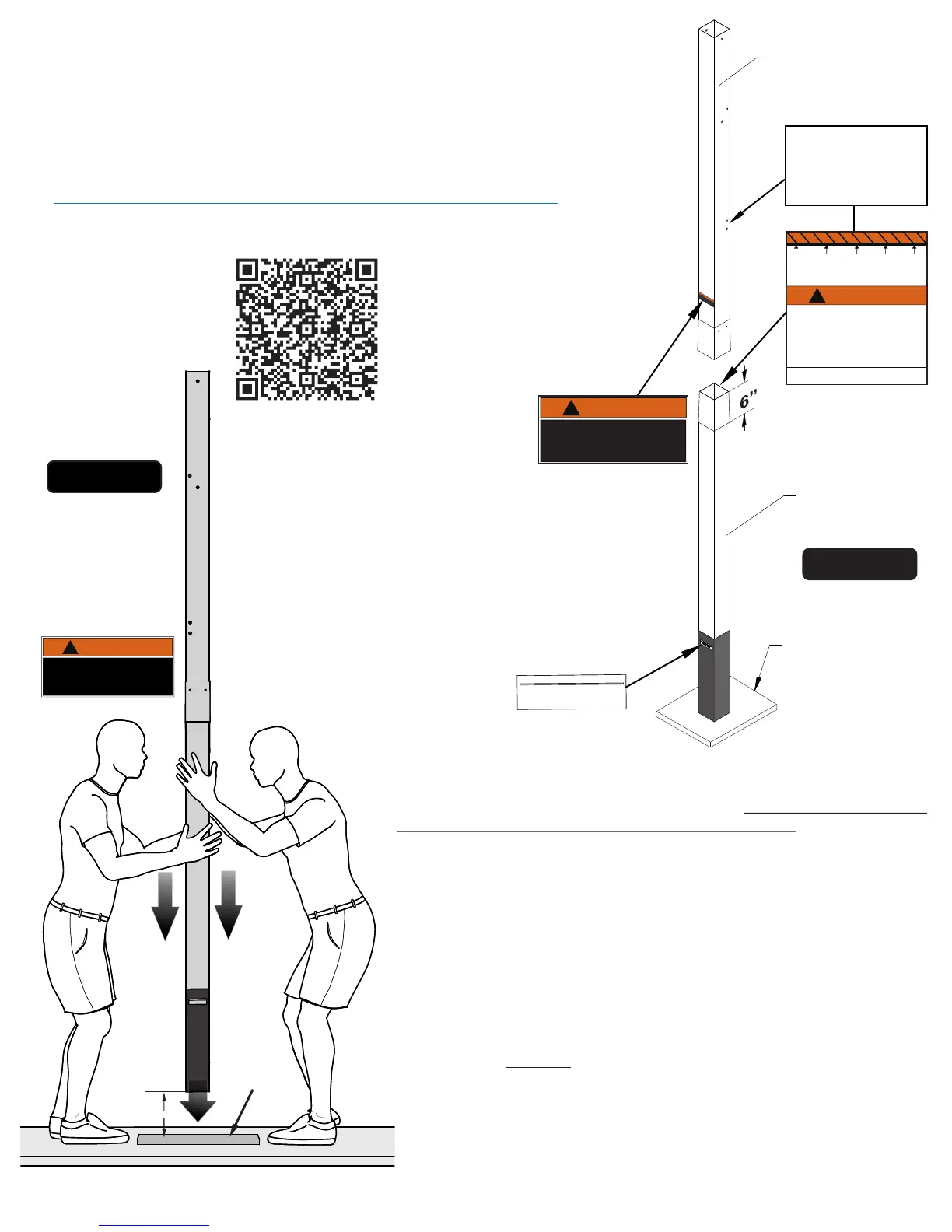 reaches the 6” mark (on Sticker) on the bottom pole. Lift the pole 10-12 inches