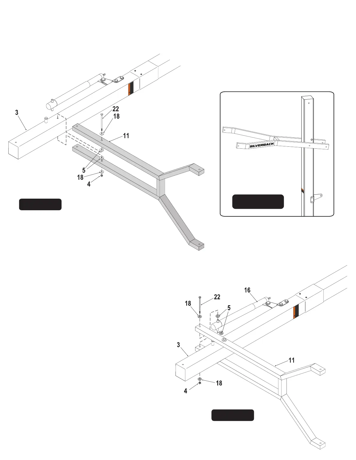 bolt (#22), two flat washers (#18), two plastic washers