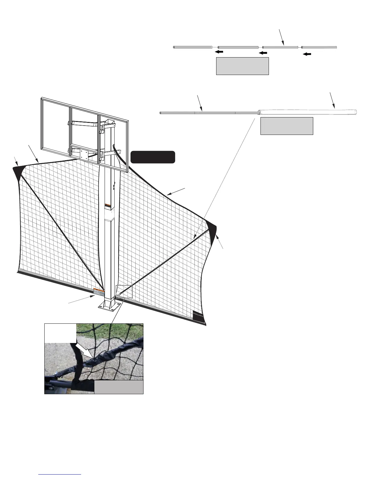 outside corners of the net. The rod will then remain on the front of the net until it reaches the