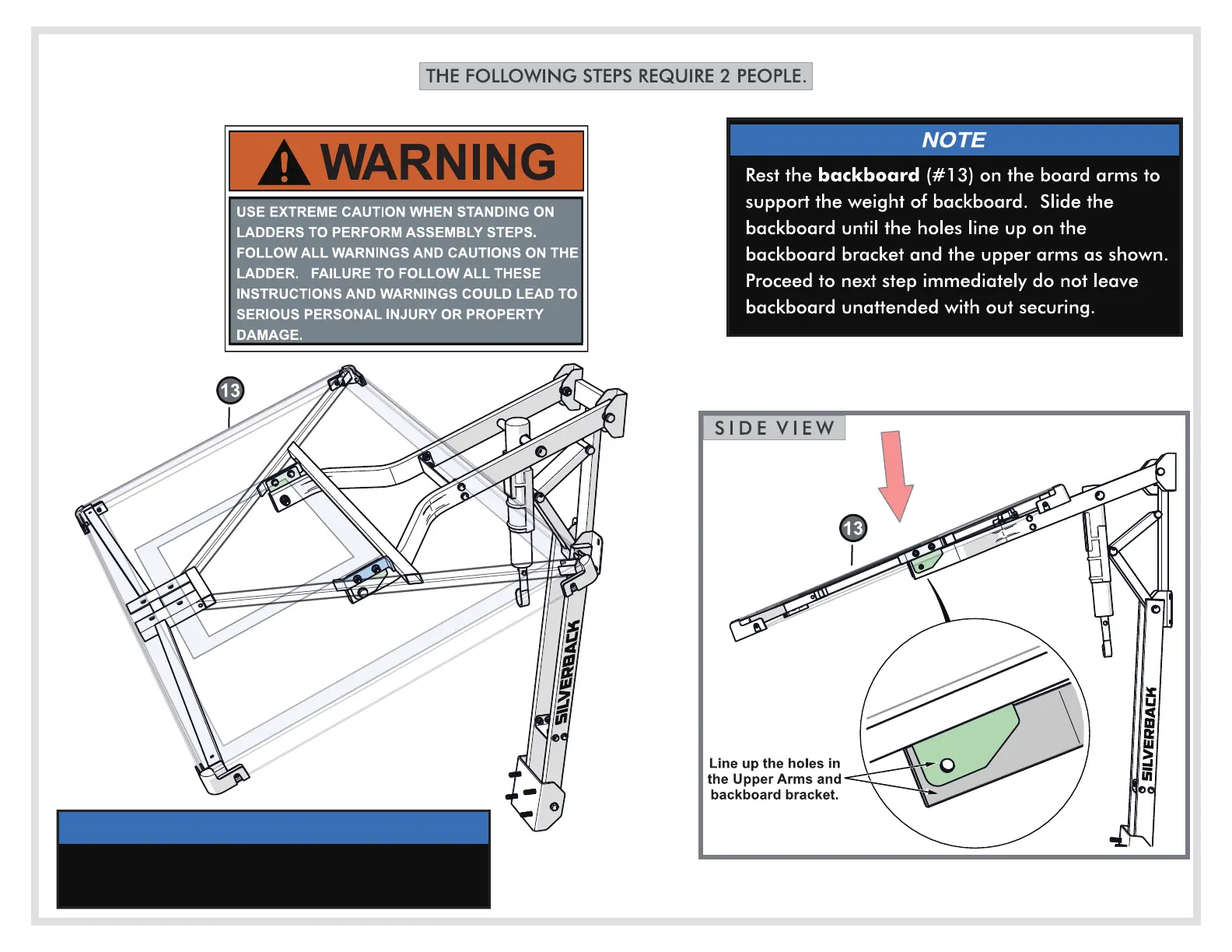 ESCALADE SILVERBACK B8403 - Backboard Attachment Procedure; Two-Person Backboard Mounting; Ladder Safety During Assembly