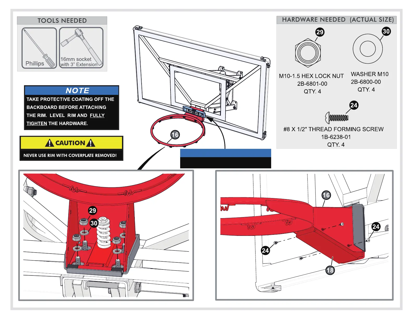 ESCALADE SILVERBACK B8403 - Rim Installation and Leveling; Rim Attachment and Tightening; Caution on Rim Coverplate