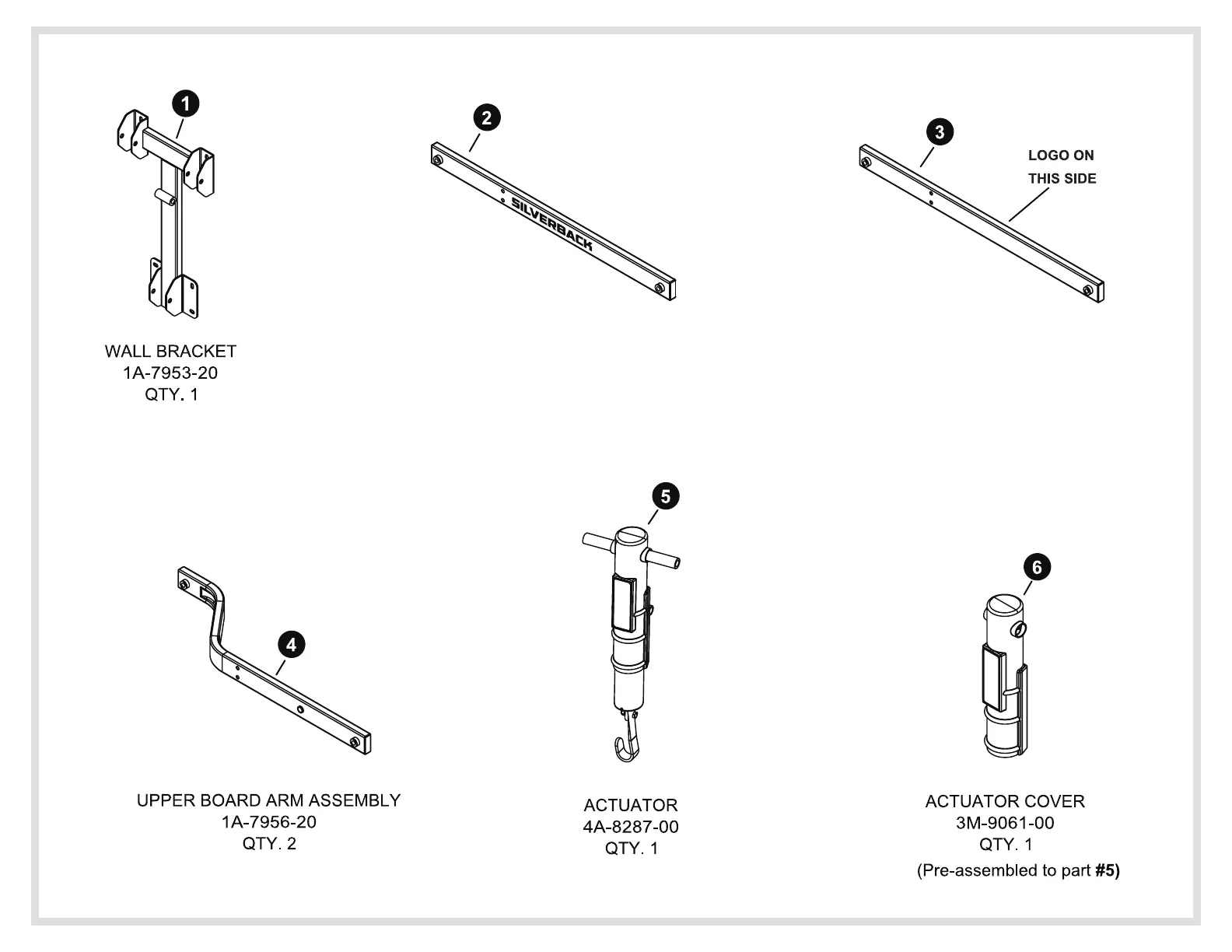 ESCALADE SILVERBACK B8403 - Product Component Identification; Wall Bracket and Arm Assemblies; Actuator and Cover Parts