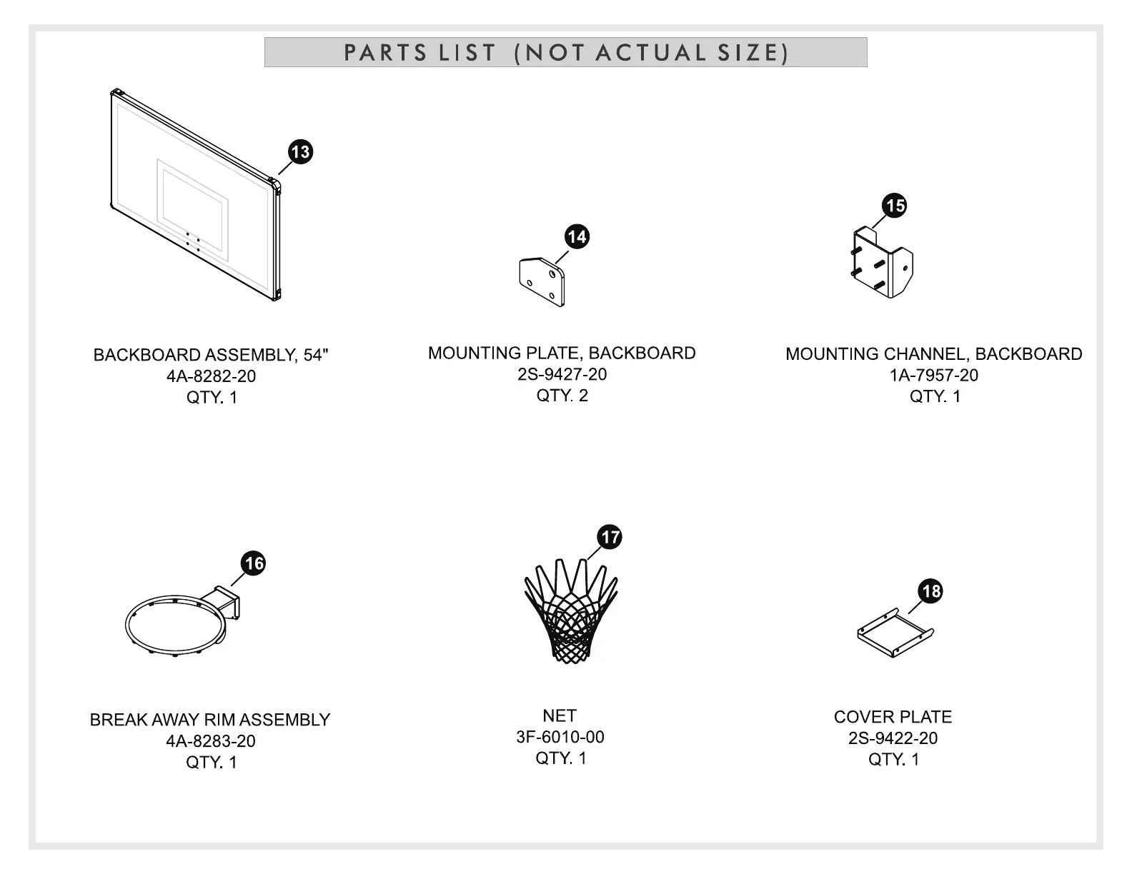 ESCALADE SILVERBACK B8403 - Backboard, Rim, and Net Components; Backboard Mounting and Rim Assembly