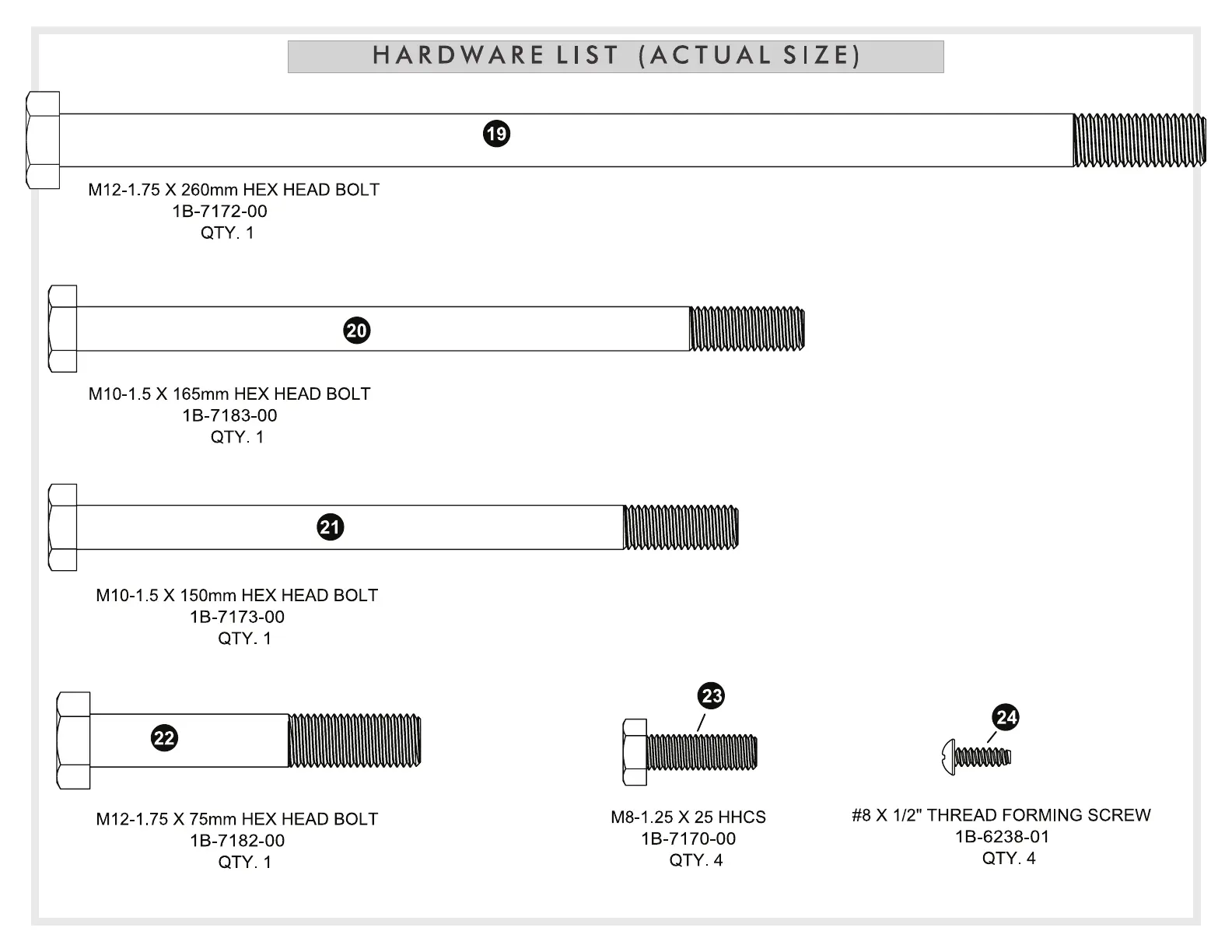 ESCALADE SILVERBACK B8403 - Hardware List: Bolts and Screws; Hex Head Bolts and Screws