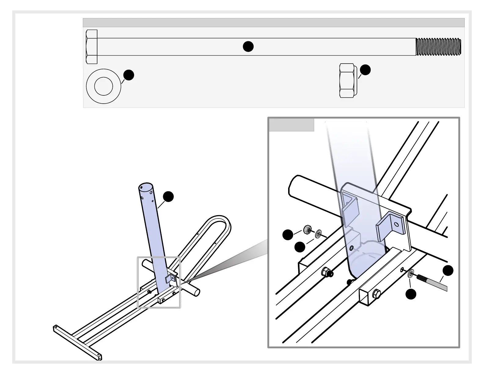 the four tubes and lower pole and attach hardware as shown