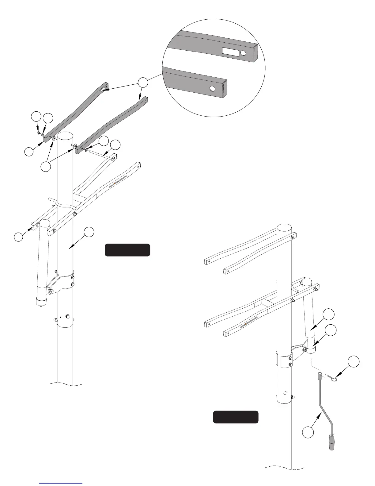 Ensamble los brazos (#6) a el poste superior (#3), como se